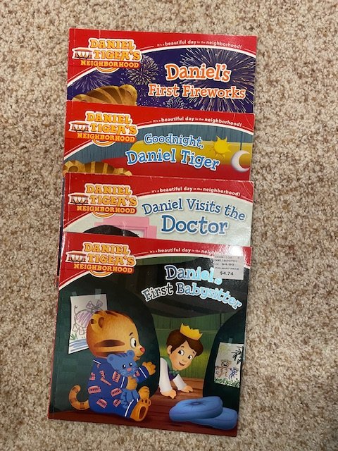 Set of four Daniel Tiger paperbacks about everyday experiences and feelings.